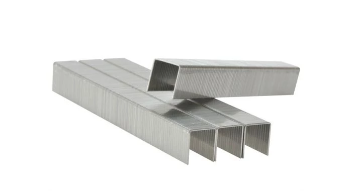 Agrafes en fil plat d’acier haute performance à coupe de précision. Le fil plat offre une surface de maintien du matériau plus grande, il est idéal pour le plastique fin, l’isolation, etc.